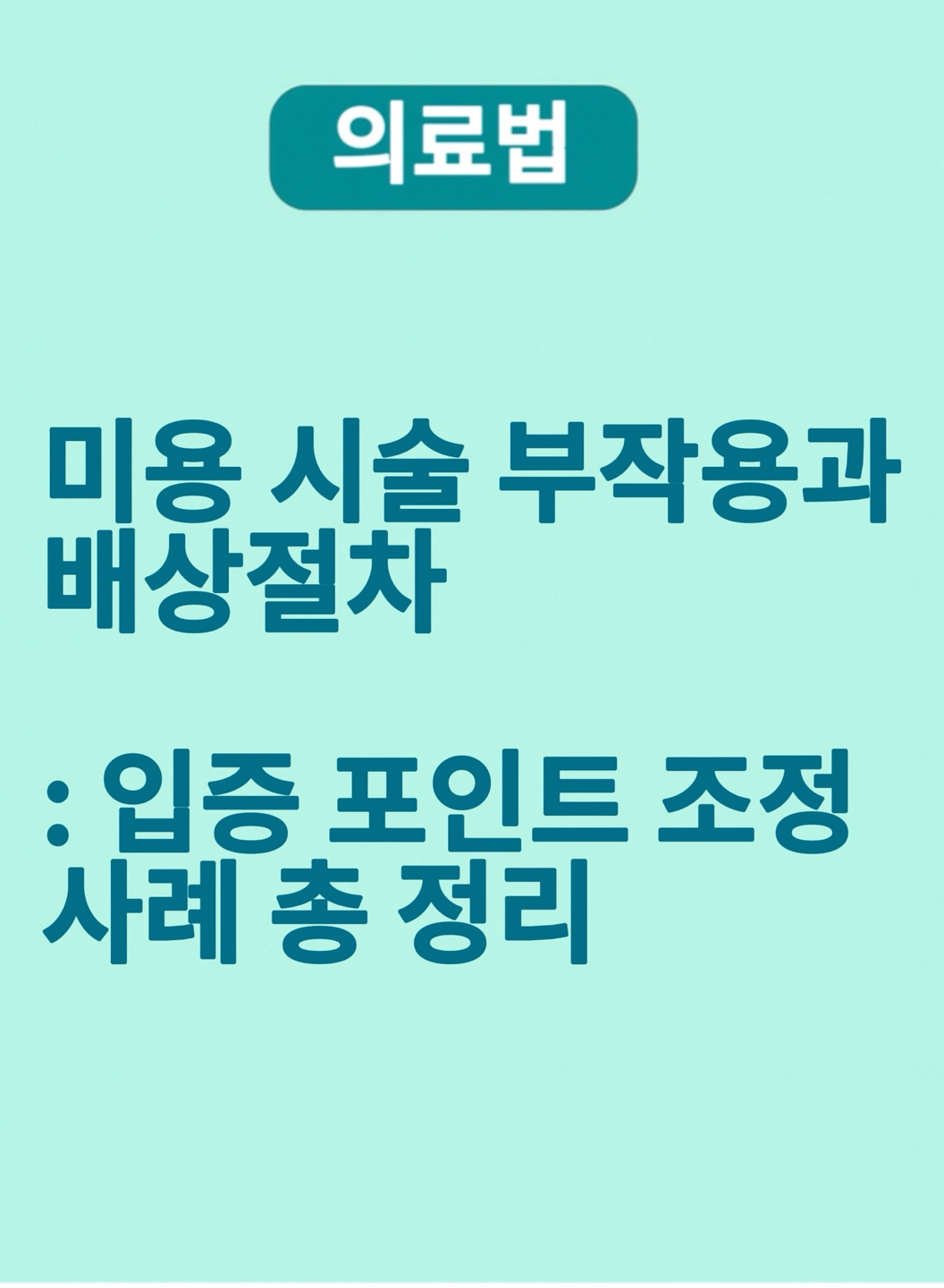 미용 시술 부작용과 배상 절차: 입증 포인트·조정 사례 총정리본 글은 일반 정보 제공용이며, 구체 사건은 사실관계·최신 법령·판례에 따라 결론이 달라질 수 있습니다. 실제 분쟁은 전문가 상담을 권합니다.키워드: 미용시술, 부작용, 손해배상 주요 쟁점: 설명의무, 과실·인과관계 실무: 증거수집, 조정·합의목차개요: 미용의료 분쟁이 어려운 이유대표 시술 & 흔한 부작용 맵법적 프레임: 과실·설명의무·인과관계즉시 대응 매뉴얼(골든타임 중심)증거 수집 체크리스트(필수·가산점 자료)배상 절차의 3트랙: 합의·조정·소송산정 항목: 치료비·휴업손해·후유·정신적 손해케이스 스터디 10가지(합법/위법·인정/기각 포인트)템플릿: 병원 통지·의무기록 청구·조정 신청FAQ 12문 12답요약 체크리스트1) 개요: 미용의료 분쟁..